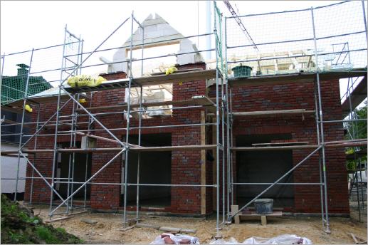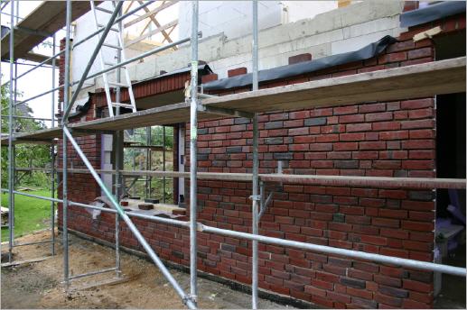 Endlich -- das Dach kommt! Nach geraumer Zeit schier endlich scheinenden Wartens beginnt der Zimmermann heute mit dem Aufbau den Dachstuhls. Damit hinken wir der Zeitangabe der Firma Zahren deutlich hinterher (07.08.: "in 2-3 Wochen") und sind froh, dass unser Haus jetzt nun bald trocken gelegt werden kann.