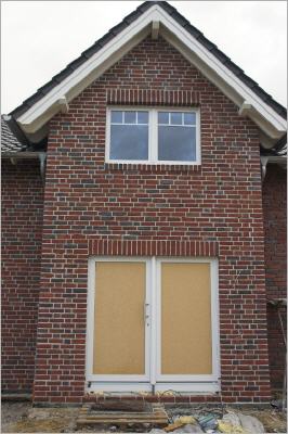 Seit heute wird das Haus mit unserer Wunschfarbe verfugt. Die helle Fuge gibt dem Haus gleich eine ganz andere Note!