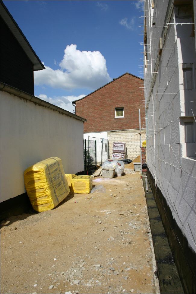 hier wird demnächst eine Garage ihr neues Zuhause finden, Anlieferung per Autokran über das Nachbarhaus hinweg. |