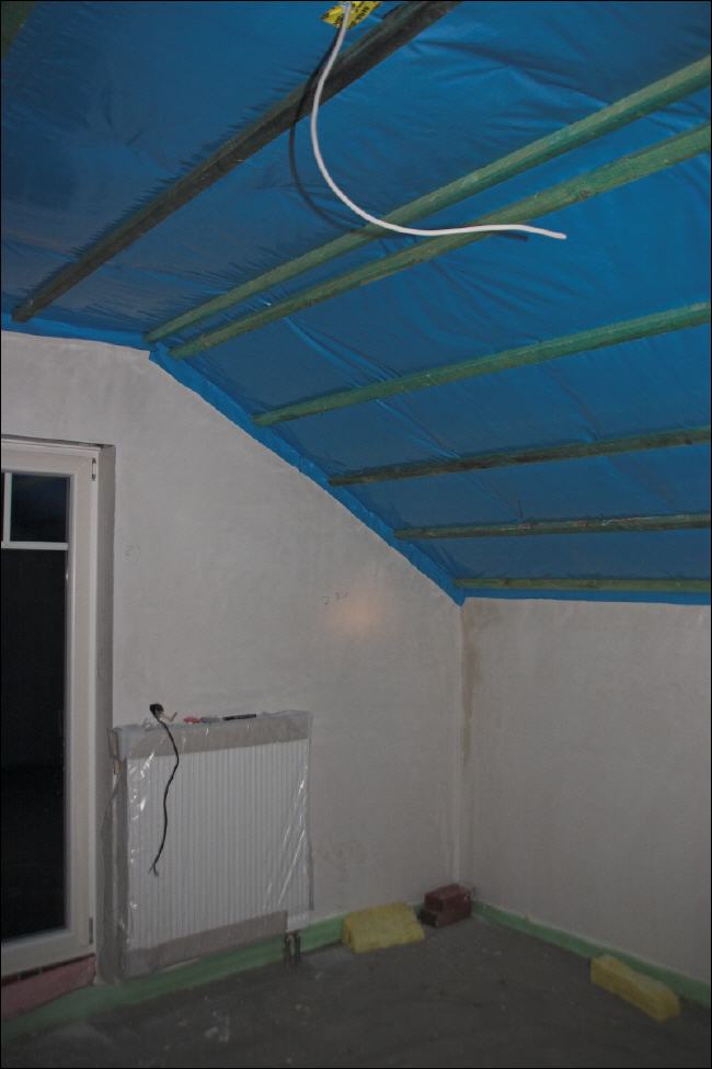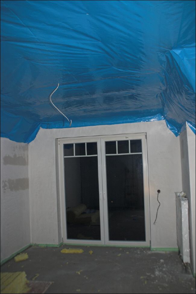 Der Innenausbau geht zügig voran. Im Moment werden die Decken isoliert und mit Rigipsplatte verkleidet.