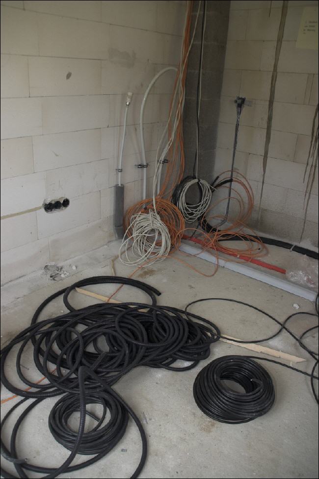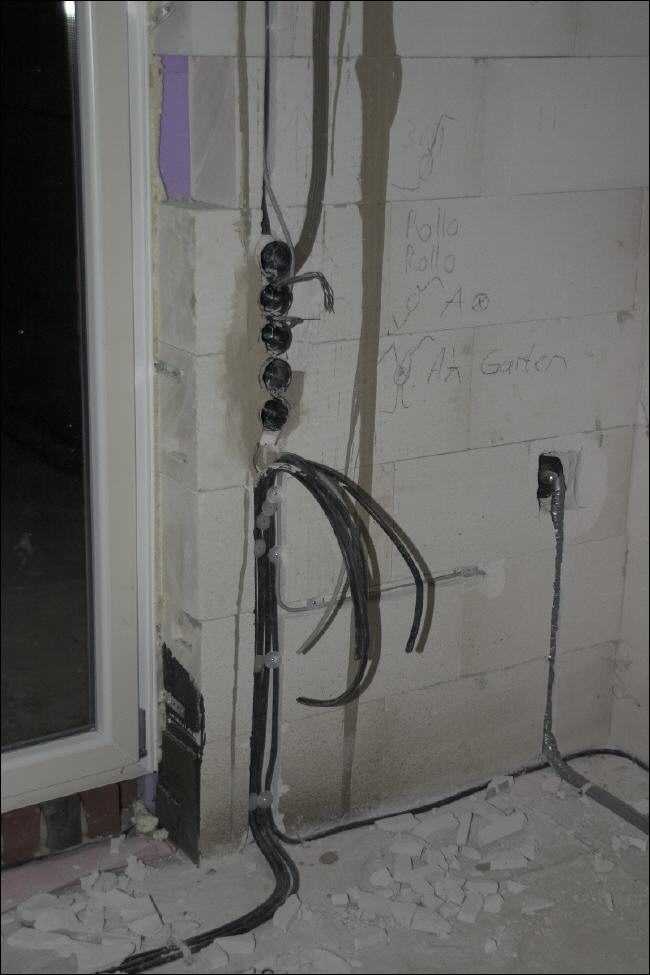 Die Elektroarbeiten gehen zügig voran. Morgen müssen die Arbeiten beendet werden, denn der Verputzer steht bereits vor der Tür. Jetzt geht es Schlag auf Schlag! Das Haus gleicht derweil immer mehr einem Umspannwerk...