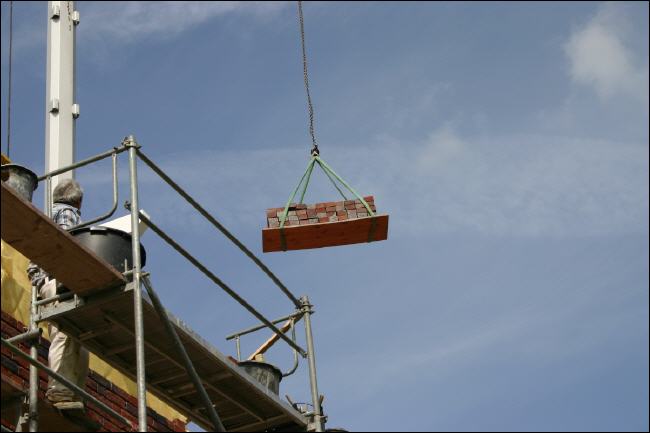 Am diesem Samstag war richtig viel los auf unserer Baustelle! Die Rohbauer hat der Ehrgeiz gepackt (oder der enge Terminplan... *g*) und man hat den sonnigen Tag genutzt, um noch einen der Giebel fertig zu verklinkern. Wir konnten das Geschehen diesmal persönlich einige Zeit beobachten. |