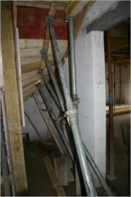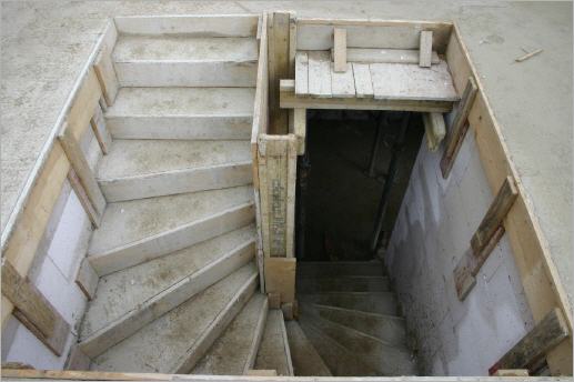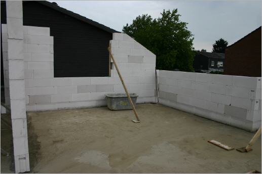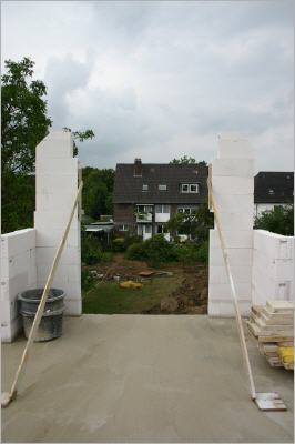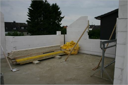 Nachdem wir jetzt eine Weile terminbedingt die Baustelle nicht besuchen konnten, gibt es viel Neues zu sehen: die Erdgeschoss-Decke ist gegossen worden (obwohl in der Baubeschreibung von Fertigelementteilen die Rede ist) und eine Treppe haben wir jetzt auch -- ebenfalls massiv gegossen.