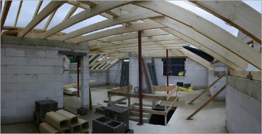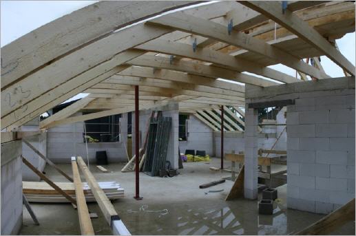 Endlich -- das Dach kommt! Nach geraumer Zeit schier endlich scheinenden Wartens beginnt der Zimmermann heute mit dem Aufbau den Dachstuhls. Damit hinken wir der Zeitangabe der Firma Zahren deutlich hinterher (07.08.: "in 2-3 Wochen") und sind froh, dass unser Haus jetzt nun bald trocken gelegt werden kann.