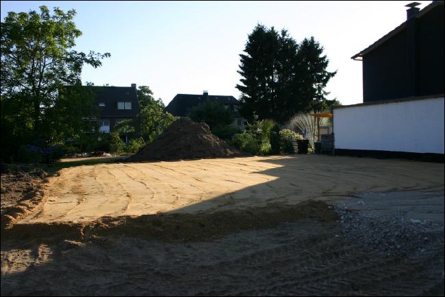 Die Anhebung des Grundstückes auf Straßenniveau wurde heute abgeschlossen. Gleichzeitig wurde die Zufahrt mittels RCL-Material (recycletes Baustoffmaterial) ebenfalls angehoben. |